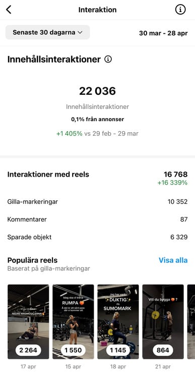 Det huvudsakliga innehållet på mina sociala kanaler är mic´d up gymvloggar. Där får man hänga med mig när jag tränar samtidigt som jag delar med mig av tips.